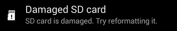 W większości przypadków telefon wyświetla powiadomienie, gdy karta SD zostanie uszkodzona: „Uszkodzona karta SD: karta SD jest uszkodzona. Spróbuj ponownie sformatować”.
