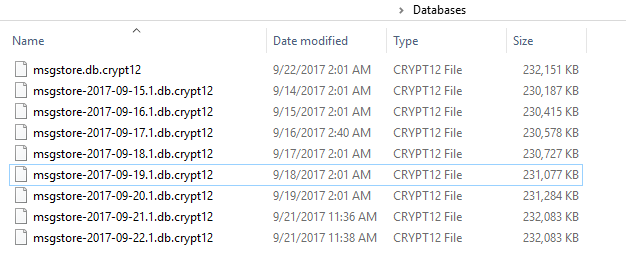 Krok 05: Znajdź plik z datą w nazwie, którą chcesz przywrócić, i zmień jej nazwę msgstore.db.crypt12.