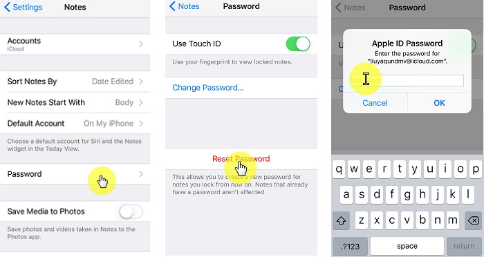 Pamiętaj, że jeśli wszystkie urządzenia Ios są zsynchronizowane, zmiana lub resetowanie hasła spowoduje również zmianę na wszystkich urządzeniach