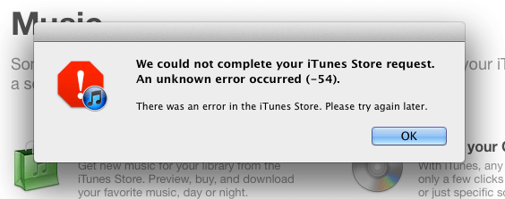 Błąd iTunes 54 w sklepie iTunes Store
