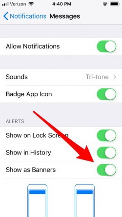 W tym momencie Twój iPhone nigdy nie pozwoli ponownie wyświetlać powiadomień na ekranie głównym.