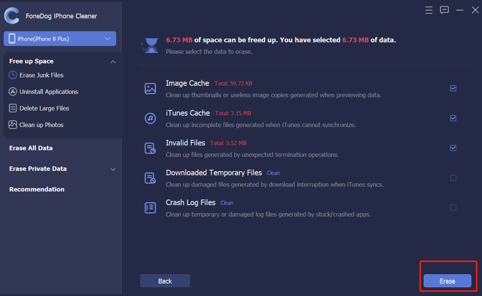 - Kliknij wymazać przycisk, aby zlokalizować wszystkie niepotrzebne pliki na urządzeniu z systemem iOS.