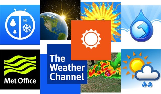 1. Perfect Weather Universal2. MSN Pogoda3. 8-bitowa pogoda4. Deszczomierz5. Pogoda 14 dni6. Truskawkowa pogoda7. Kanał pogody8. Radar pogodowy MyRadar9. Weather Radar Pro (płatny)10. Prognoza (płatna)11. Radar wysokiej rozdzielczości NOAA (płatny)